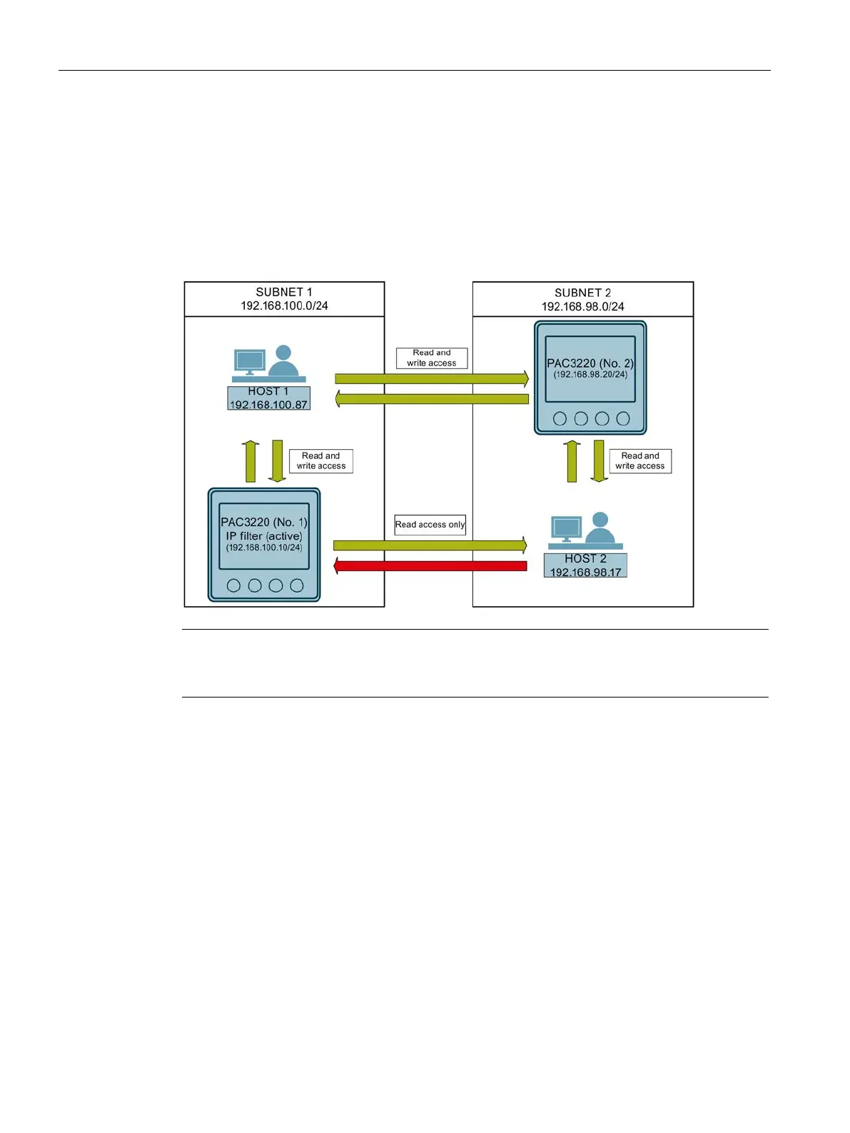 PAC3220 No. 1 with IP filter is located in subnet 1 (192.168.100.0/24).