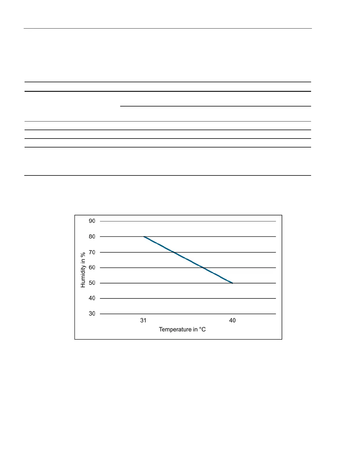 The maximum relative humidity is 80 % at temperatures up to 31 °C, decreasing linearly