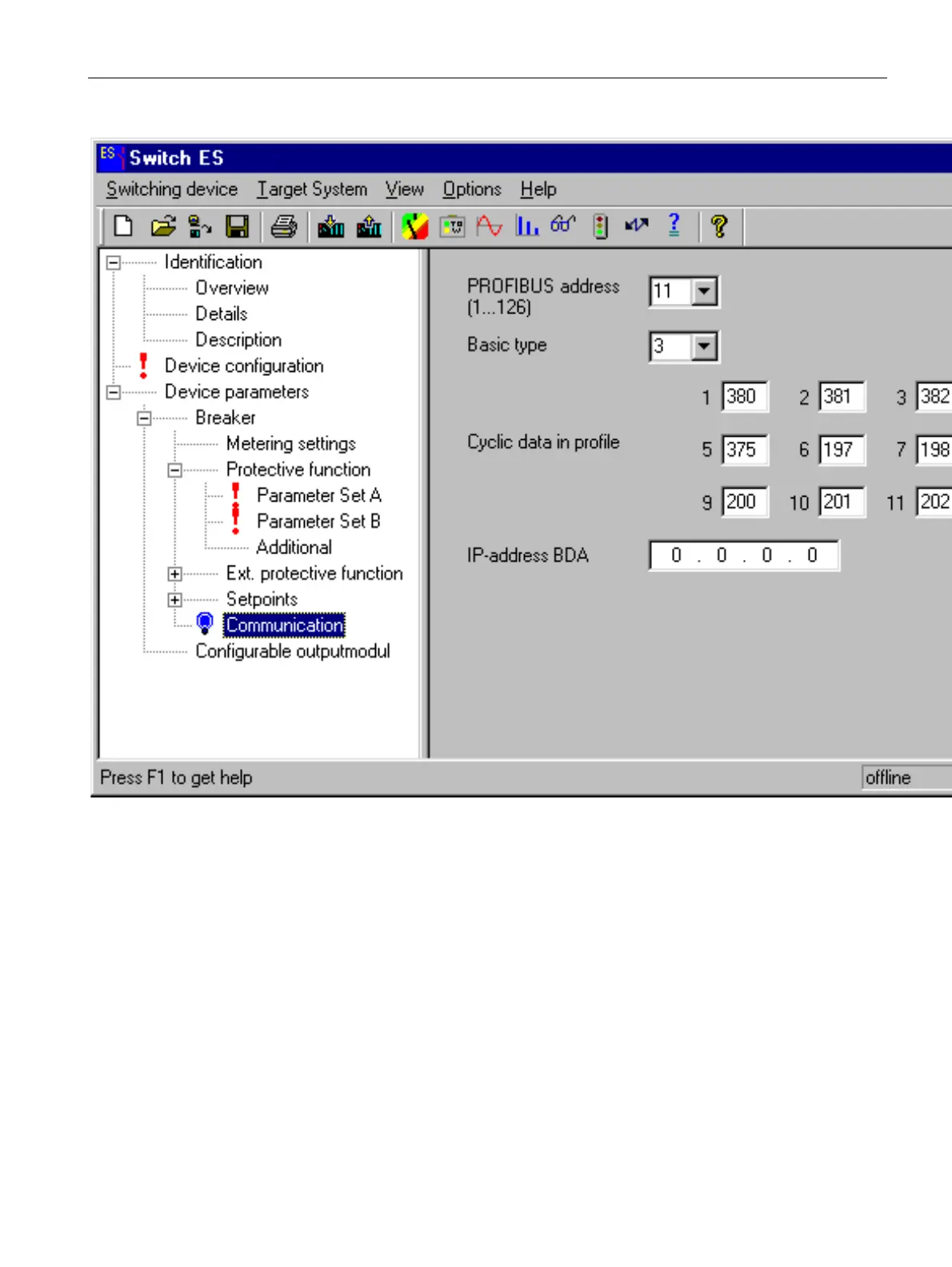 Figure 6-5 Setting the PROFIBUS address with SWITCH ES Power (here Version V1.0)