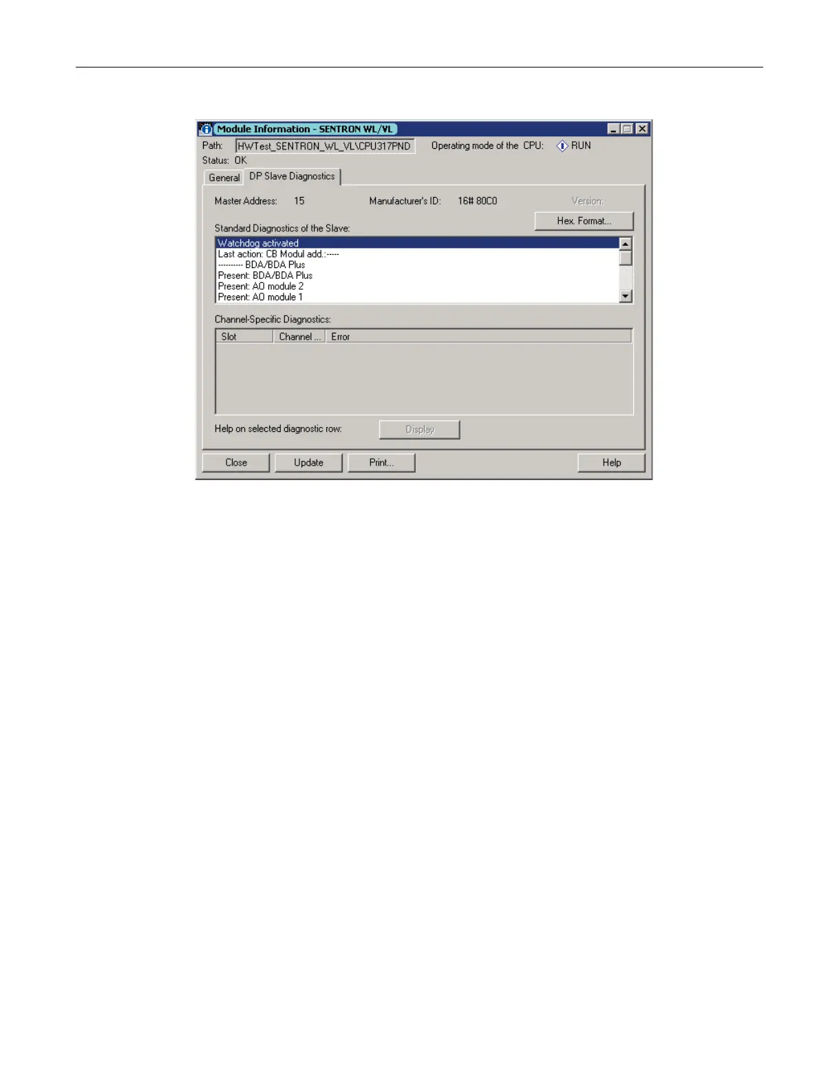 SYNC (synchronization of the outputs) and FREEZE (freezing of the inputs). The SENTRON