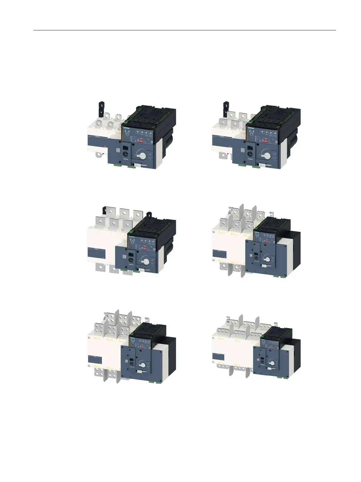 The following figures show the different designs of the transfer switching equipment depicted