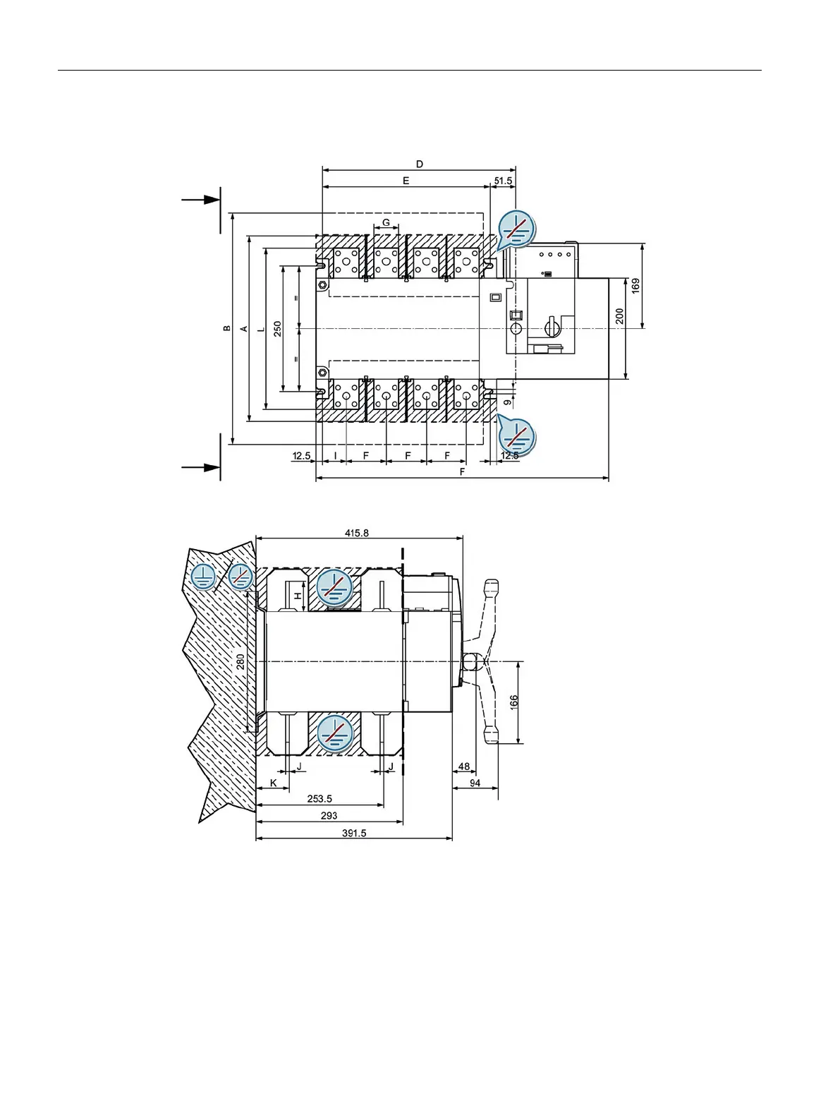 Figure 12-8 Dimension drawing current rating 800 A to 1600 A, side view