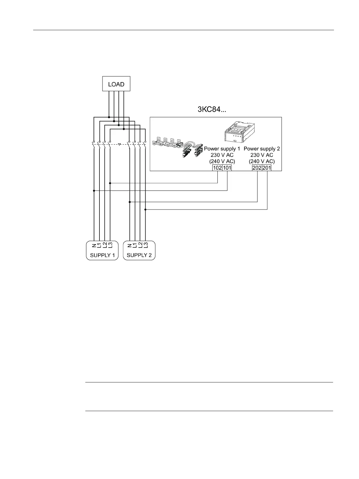 Figure 6-2 Three-phase 4-wire network with neutral for the 3KC8 transfer switching equipment