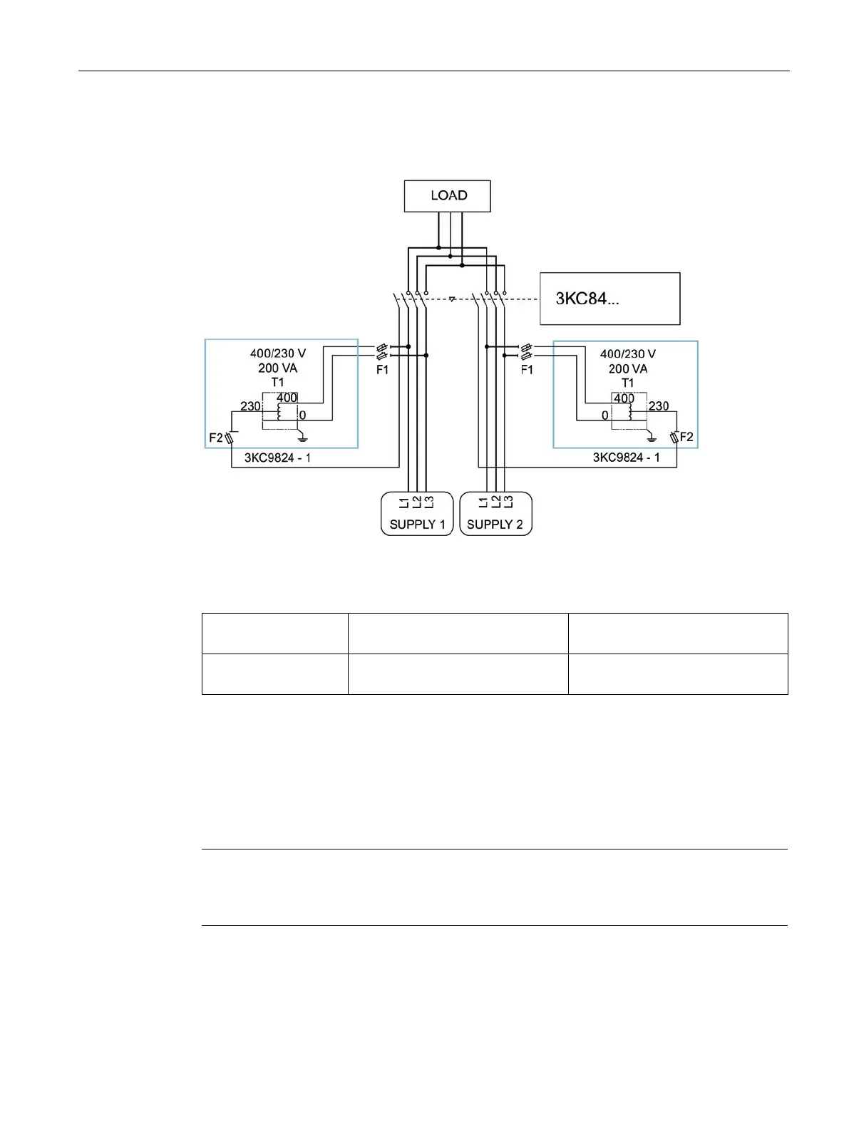 ● 2 x autotransformer 3KC9824-1. For information, see the section titled Installing and