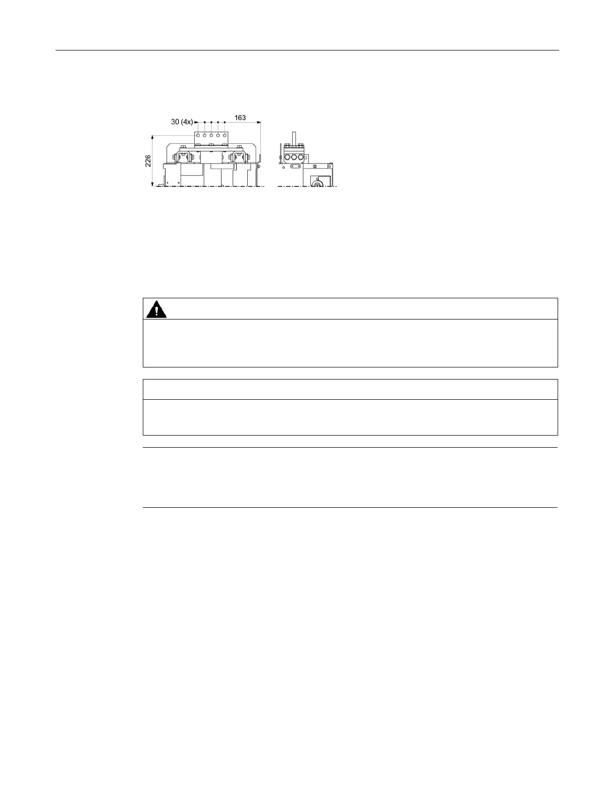 Busbars with the following minimum dimensions must be used for line-side connection: