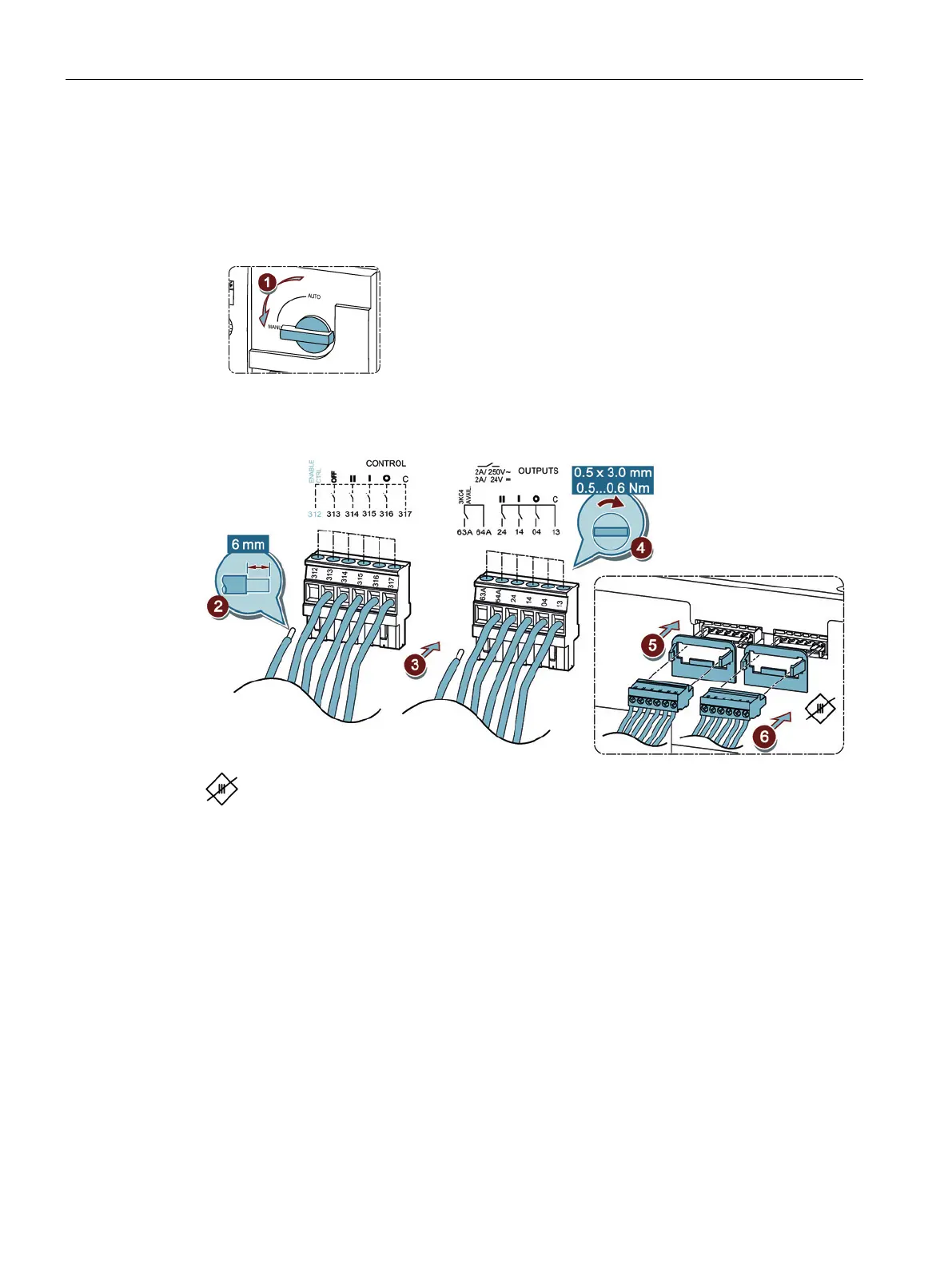 3. Connect the supply lines with the connector for the outputs of the motor operator. You