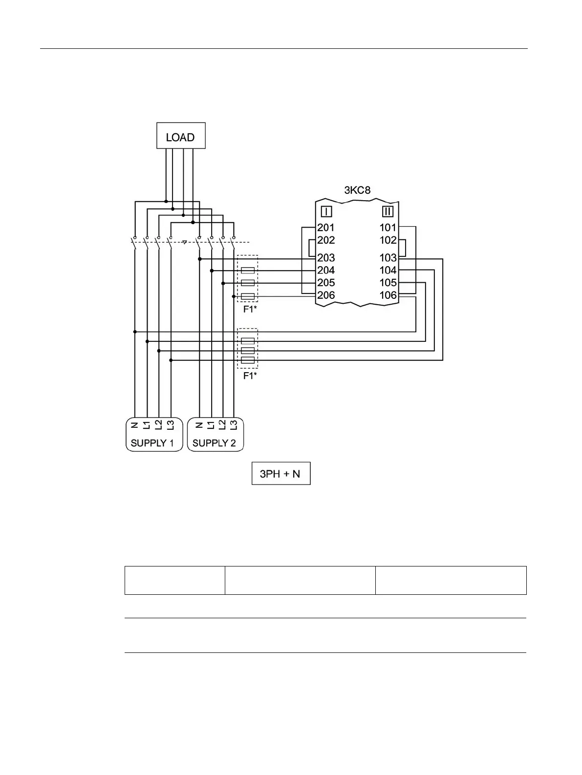 A typical connection of sources I and II (3PH + N) to the electronic module of the 3KC8 is