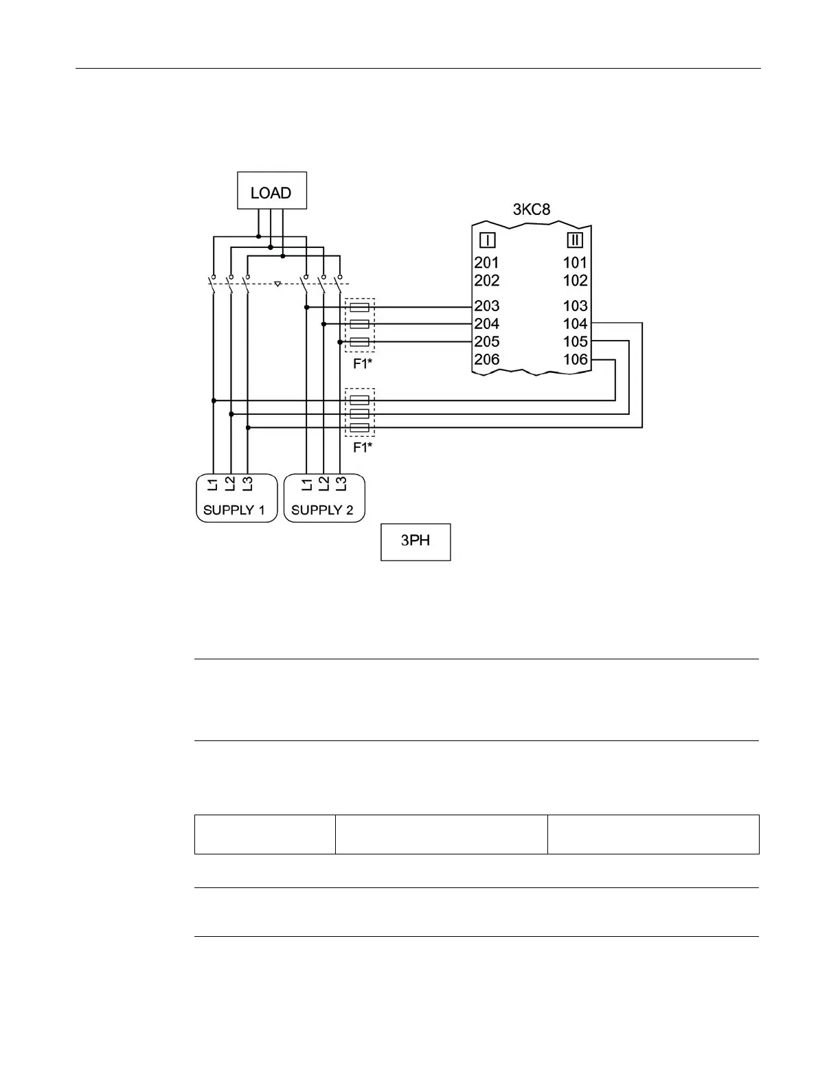 A typical connection of sources I and II (3PH) to the electronic module of the 3KC8 is shown