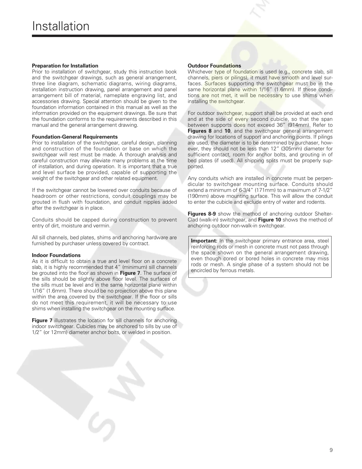 indoor switchgear. Cubicles may be anchored to sills by use of