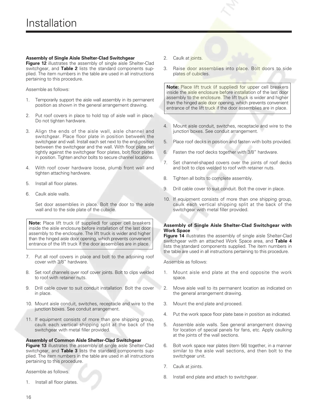 switchgear. Place floor plate in position between the