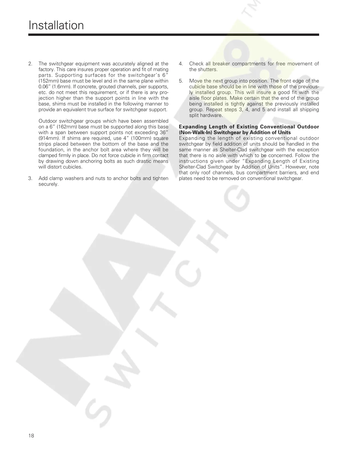 parts. Supporting surfaces for the switchgear’s 6”
