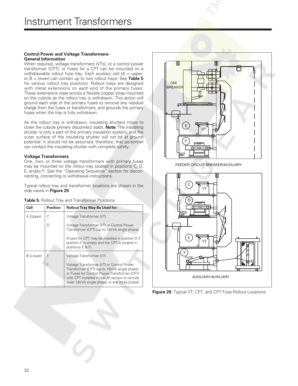 Figure 29. Typical VT, CPT, and CPT Fuse Rollout Locations