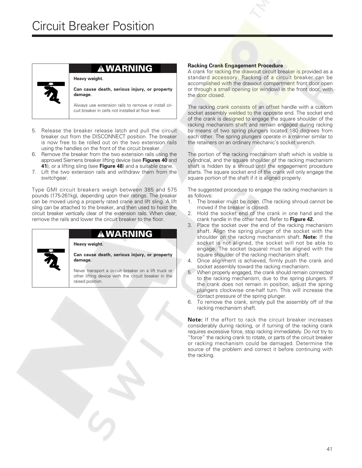 approved Siemens breaker lifting device (see Figures 40 and