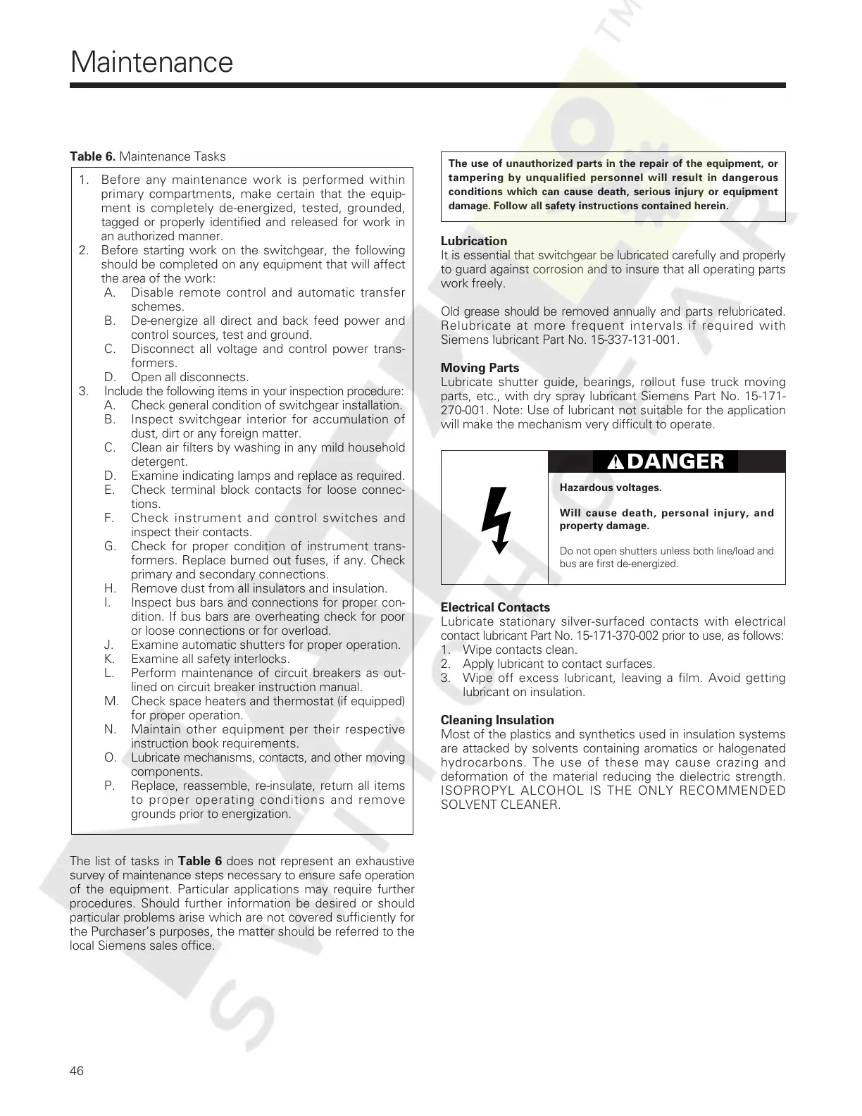 It is essential that switchgear be lubricated carefully and properly