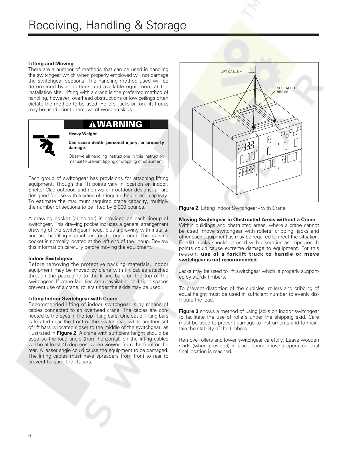 switchgear. If crane facilities are unavailable, or if tight spaces