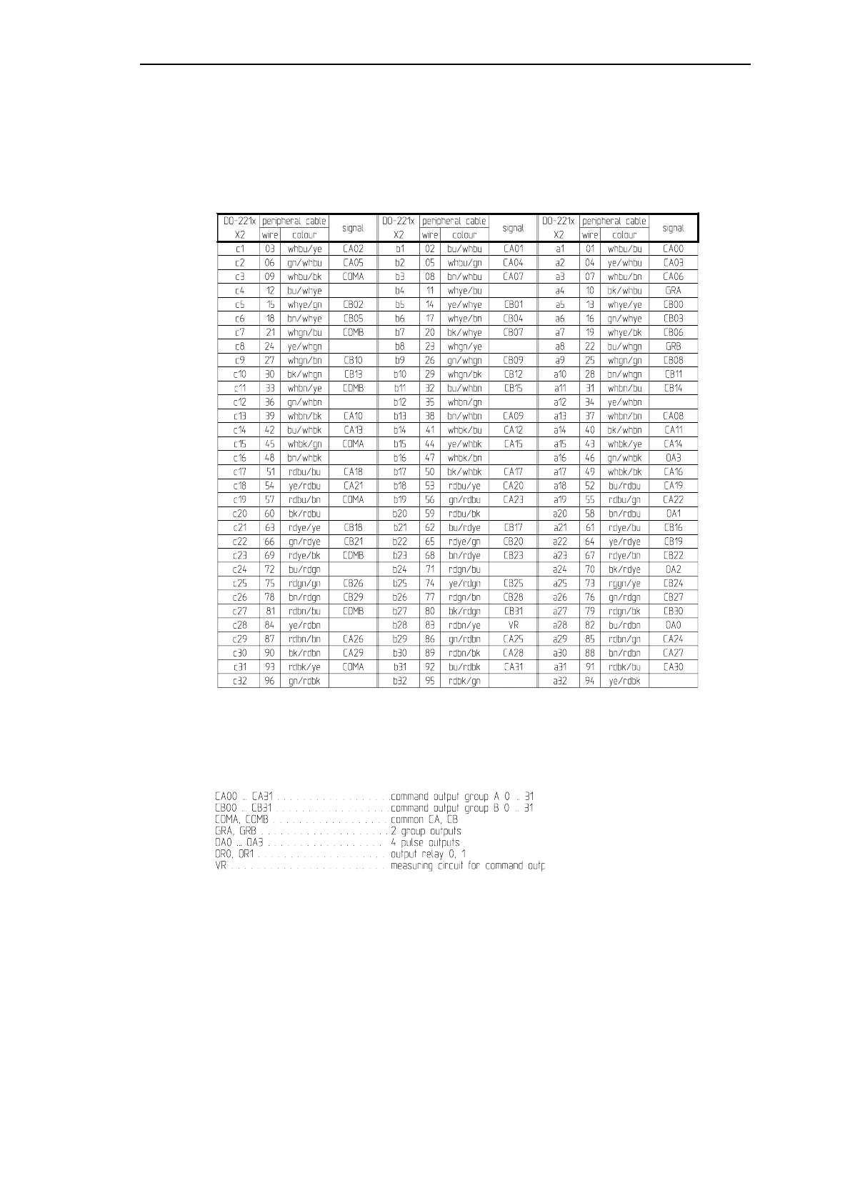 The "DO/X2" column refers to the male connector of the peripheral connectors.