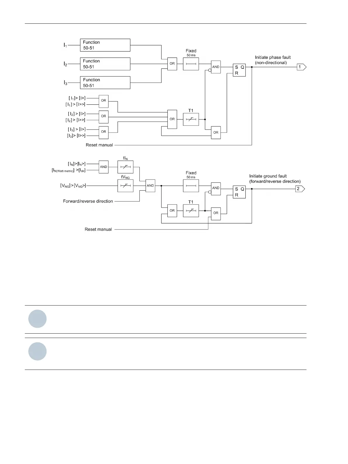 The following logic diagram illustrates the fault indication and fault reset.