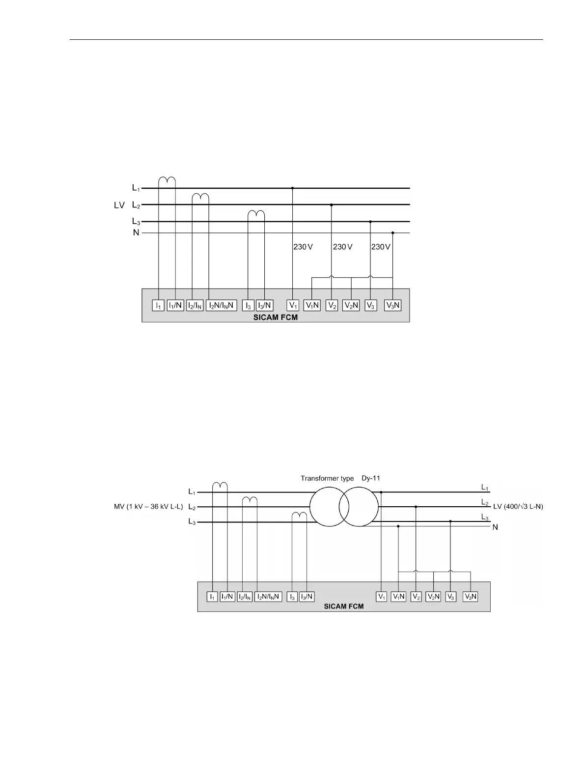 This function can be selected by configuring the Secondary voltage parameter to 230 V.