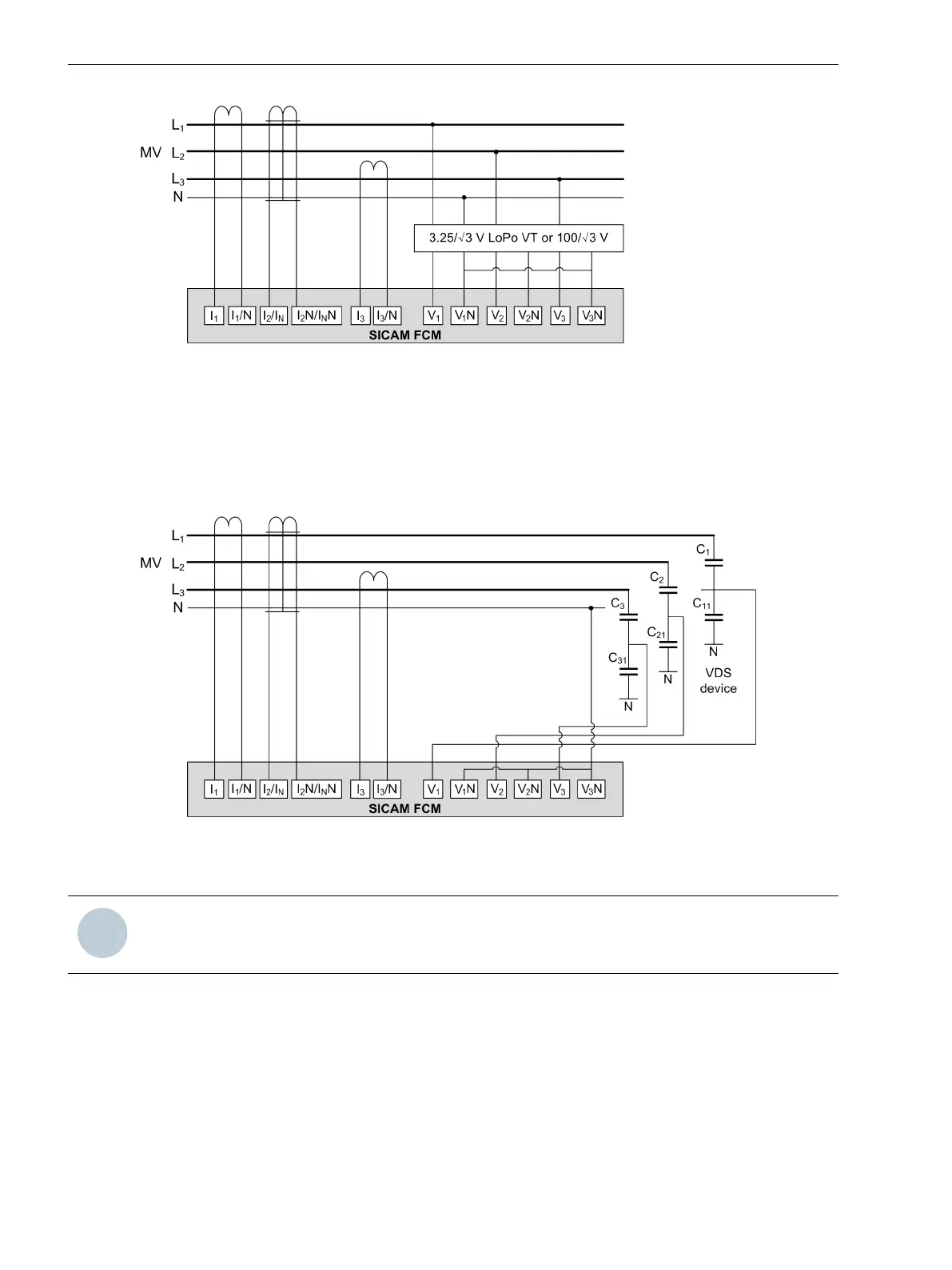 Figure 7-5 SICAM FCM as Fault Detector – 3 Low-Power Voltage Sensor with 2 Phase Currents and Sensi-