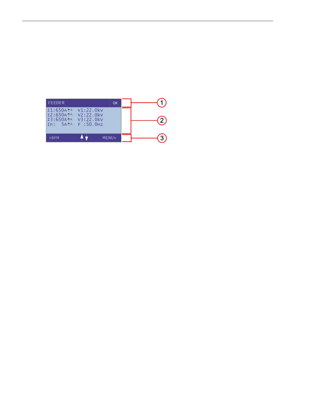 The display area shows the default measured values, such as currents, voltages, power, and frequency.