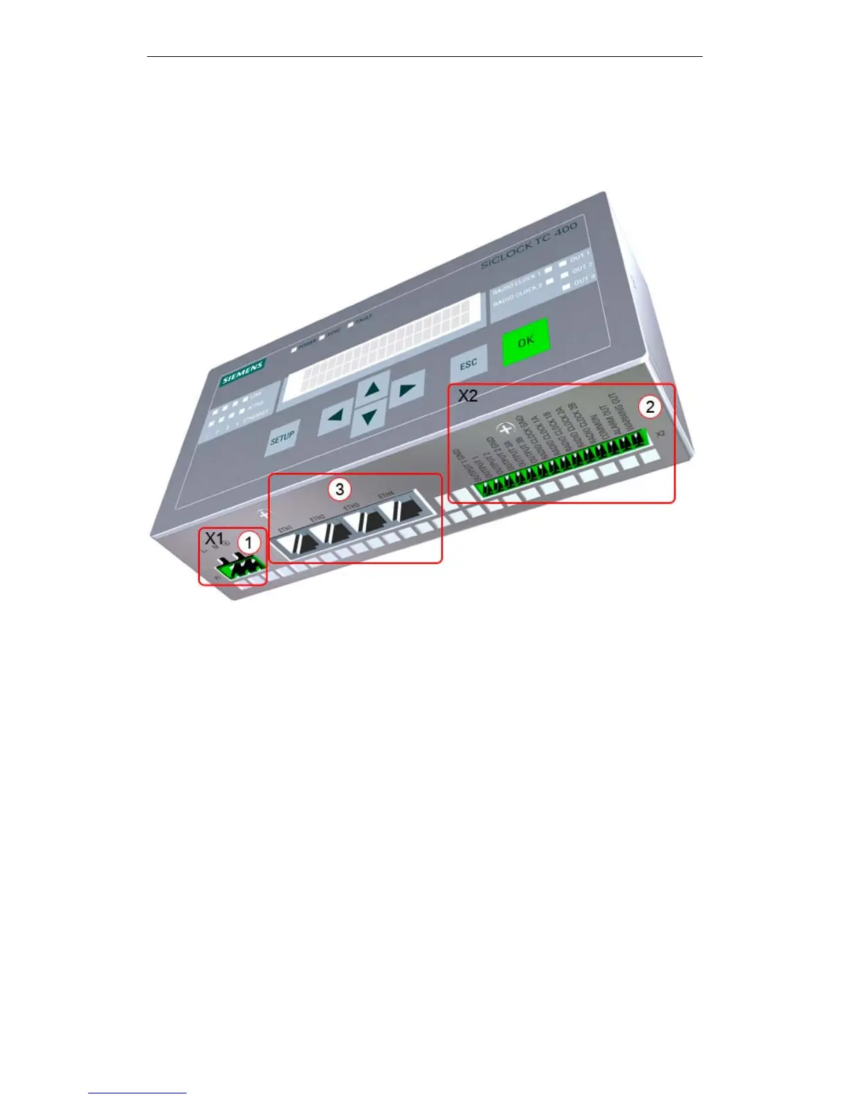 Figure 3-2 SICLOCK TC 400 - arrangement of the connections