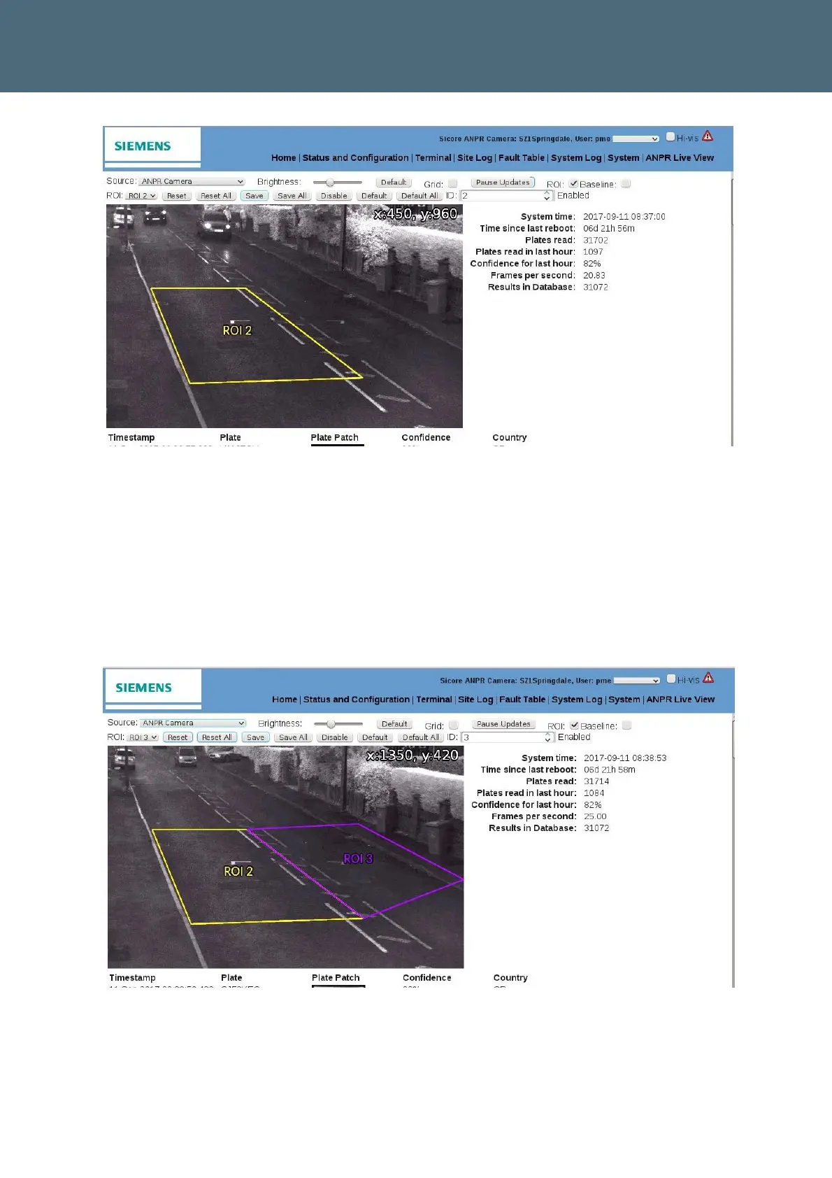The camera will now detect plates only within the area defined as ROI 2 and ROI 3 and will
