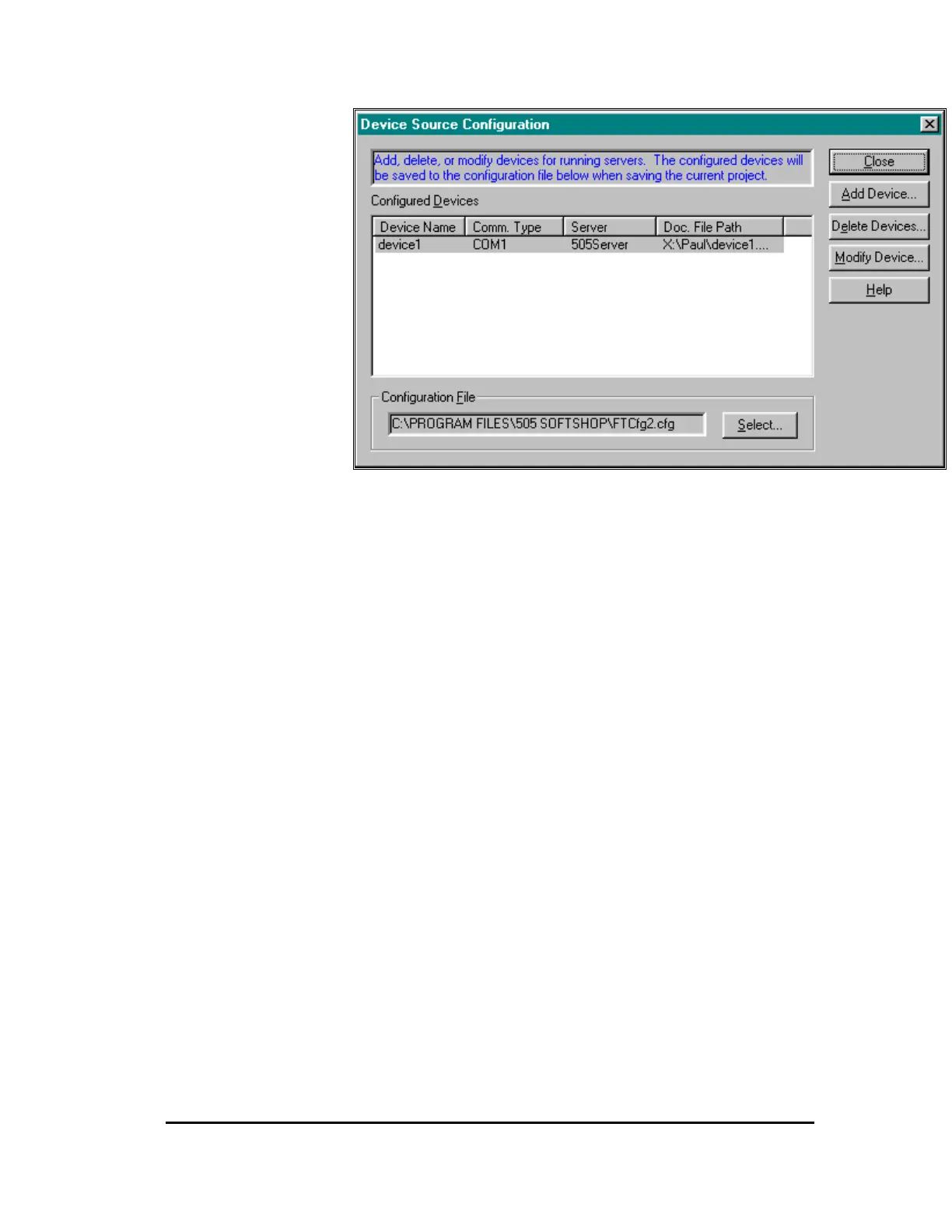application. The Device Source Configuration screen is disabled if no