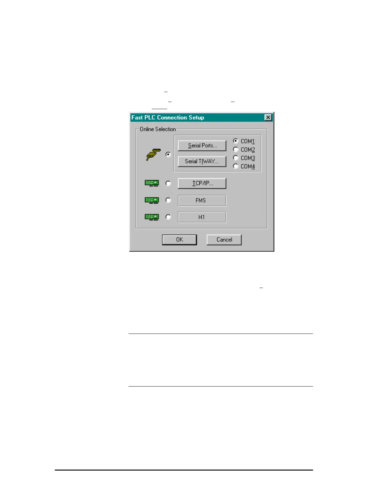 the Fast PLC Connection Setup dialog box. If you need to