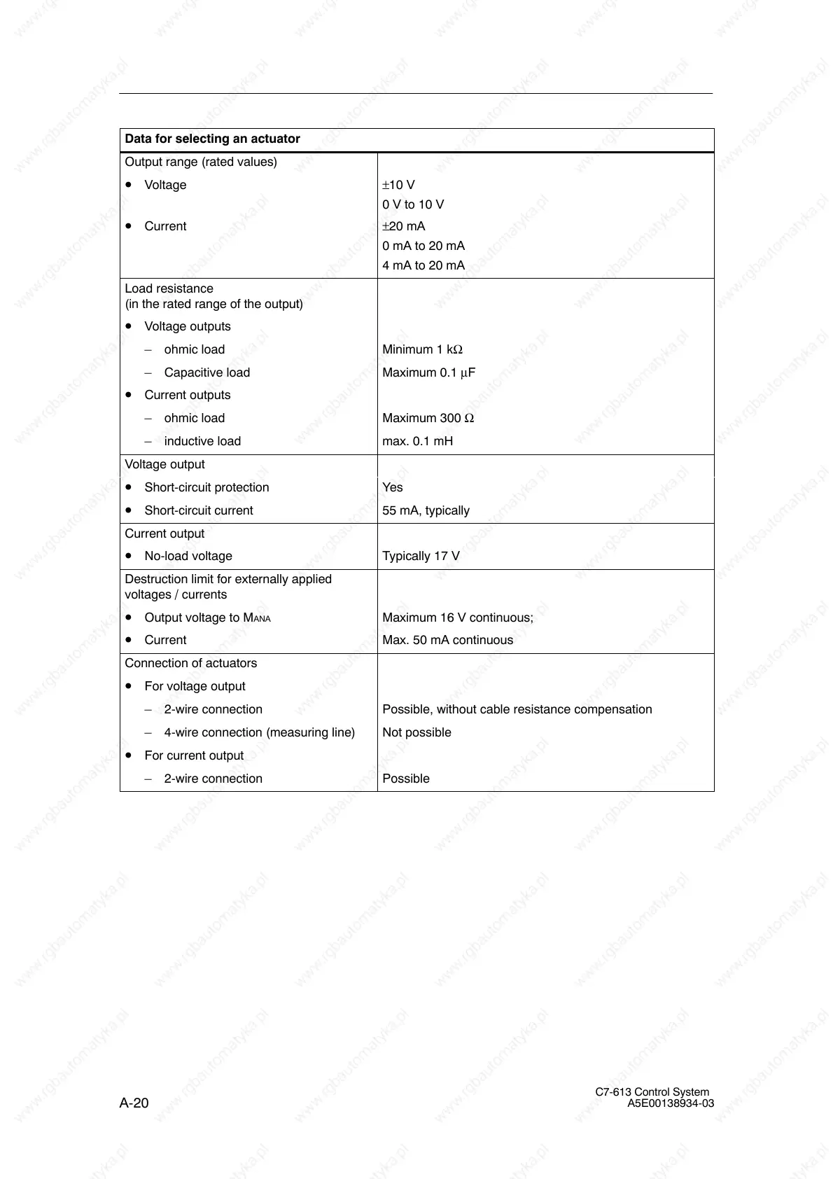 • Output voltage to MANA Maximum 16 V continuous;
