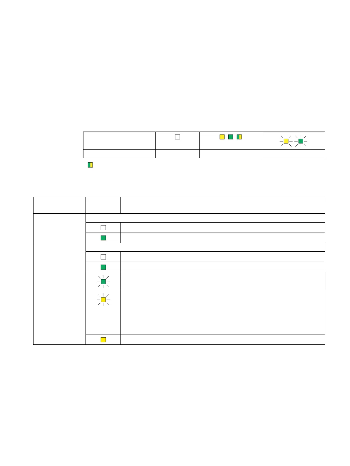 The LED symbols in the table below correspond to the following states of the LEDs: