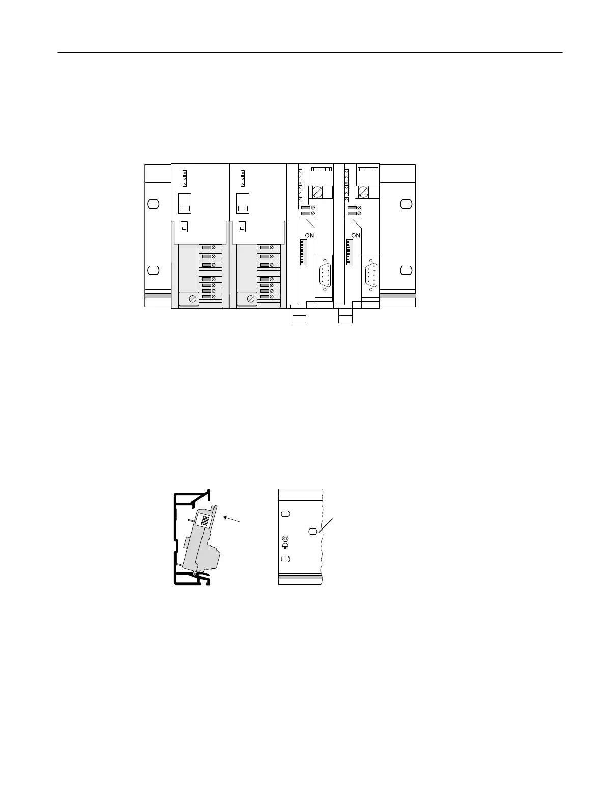 4. Screw the modules into place. This also fastens the bus module on the mounting rail.
