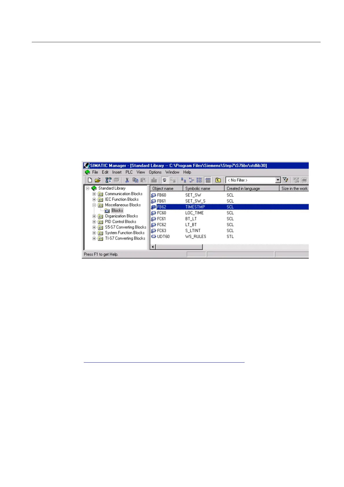 Figure 8-8 Storage location of the FB 62 in STEP 7