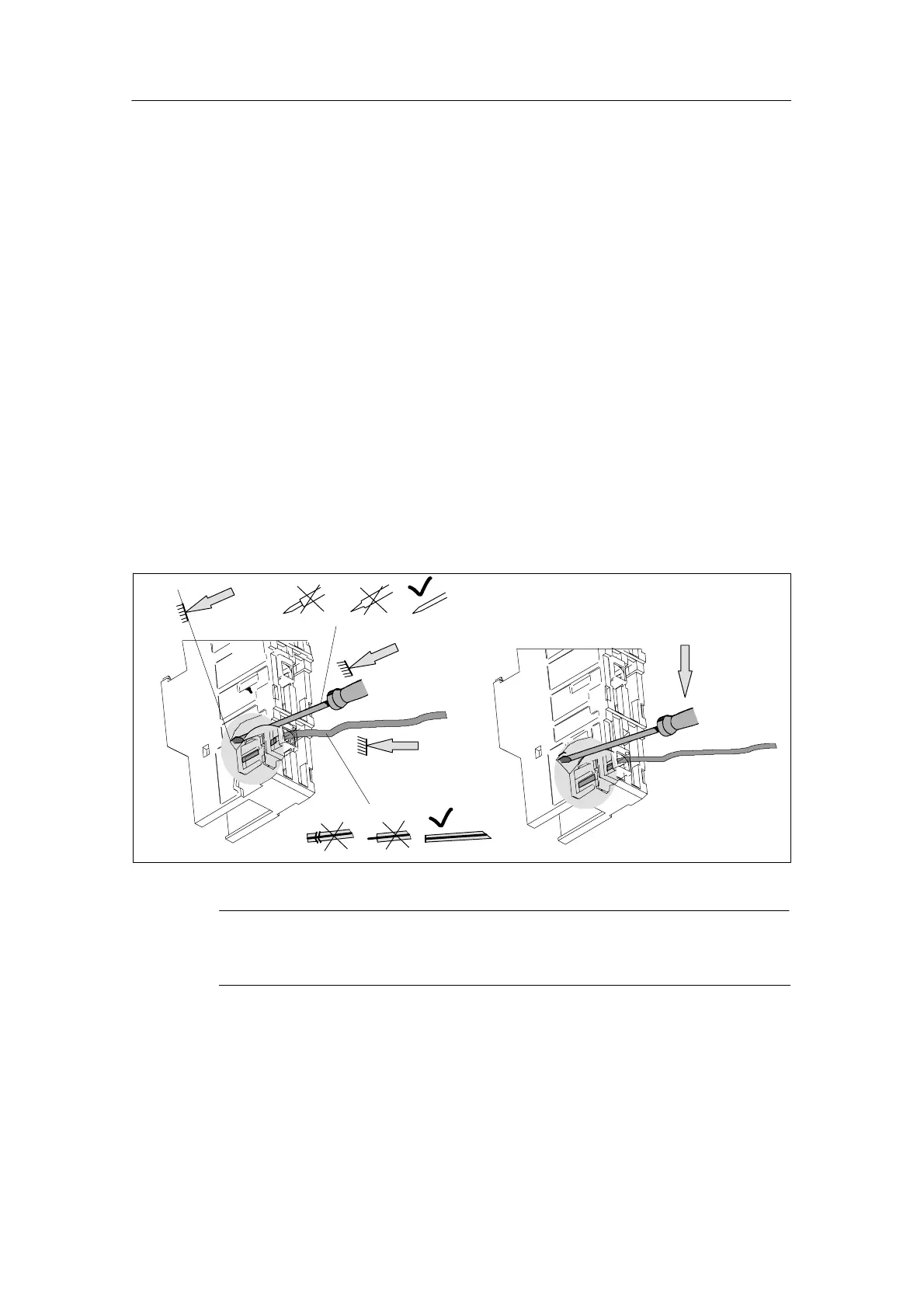 1. Insert the unstripped cable in the round opening until it stops (the insulation and