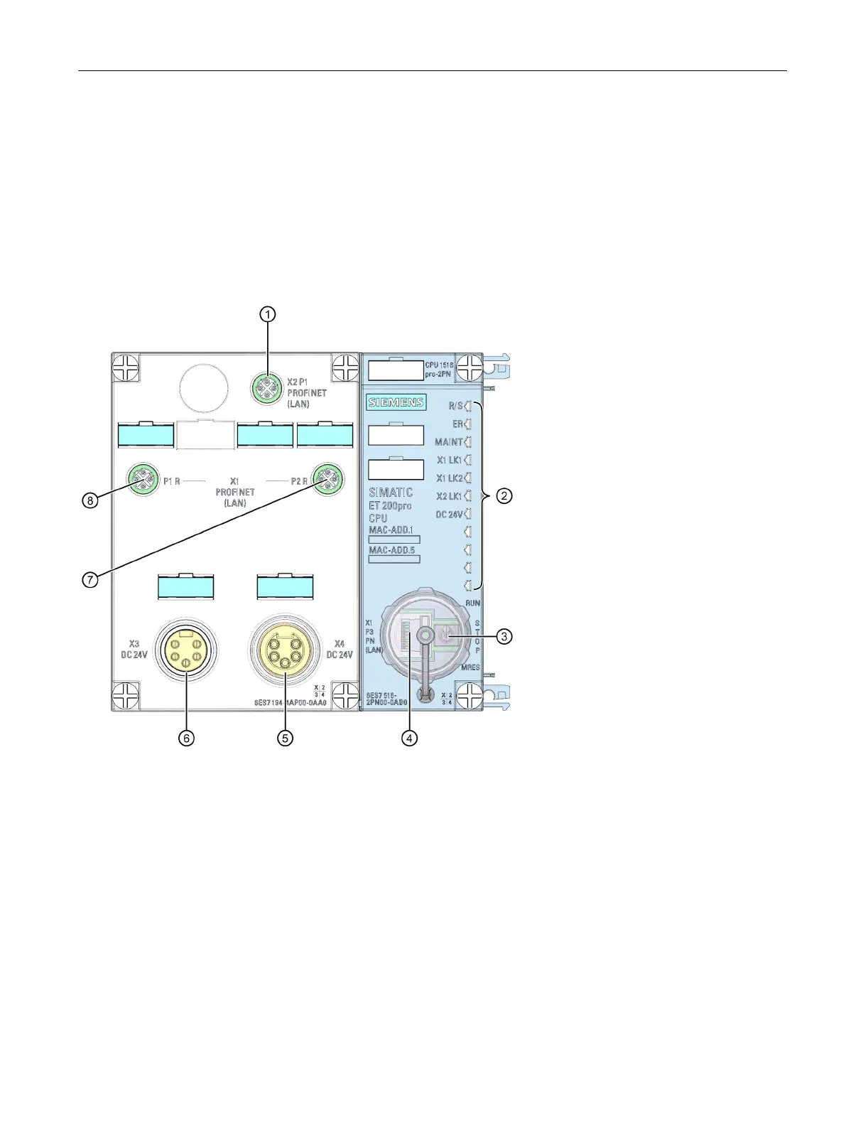 RJ45 socket; e.g. for connecting a programming device for service purposes (Port 3 of PROFINET interface X1). This