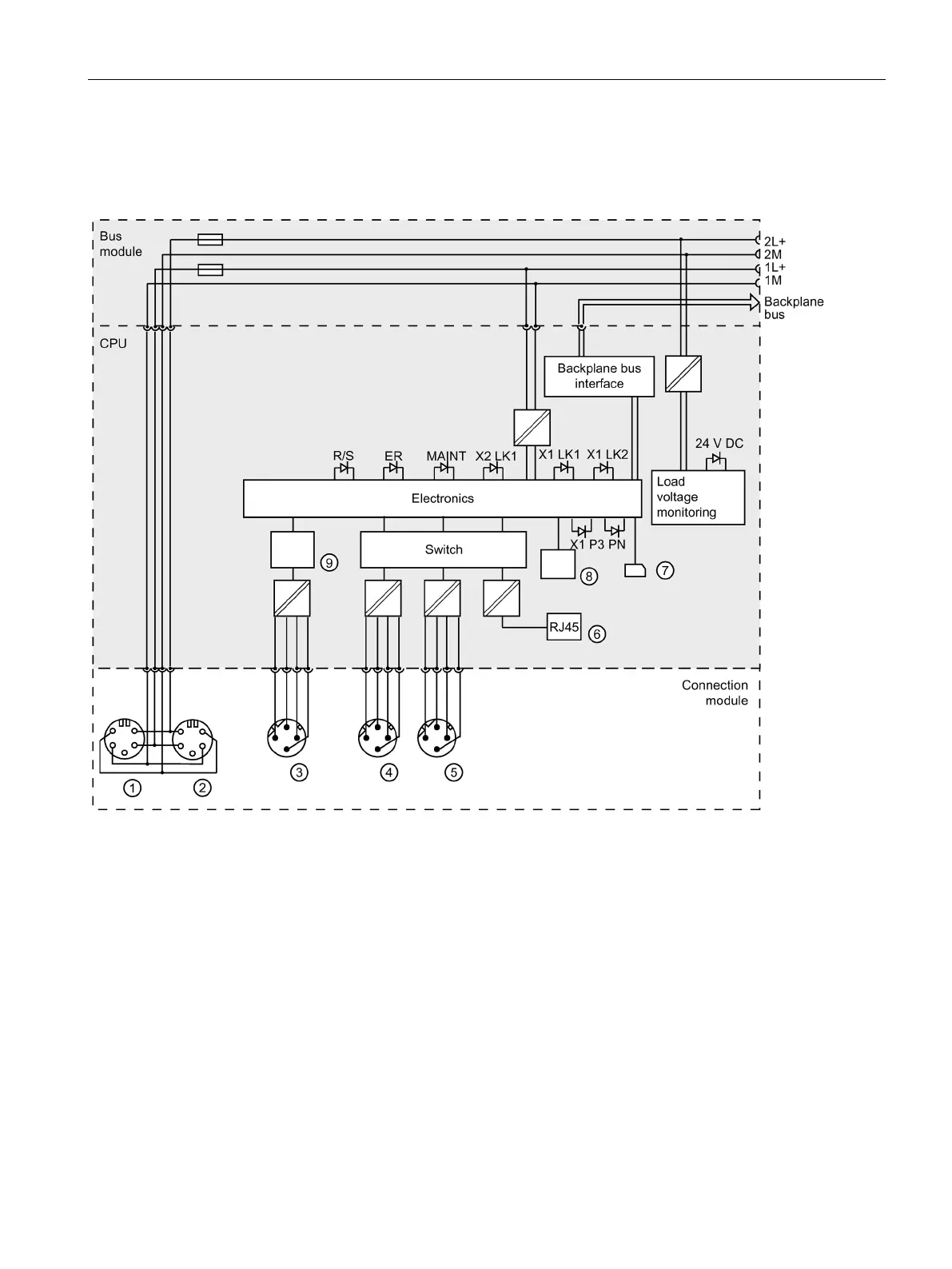 Loop-through of electronics/encoder supply 1L+ and load voltage supply 2L+ (X4)