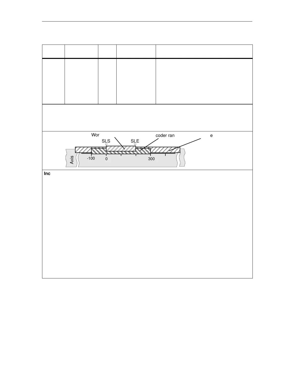 • The “encoder range” is the range covered by the encoder. With a linear axis, this is placed