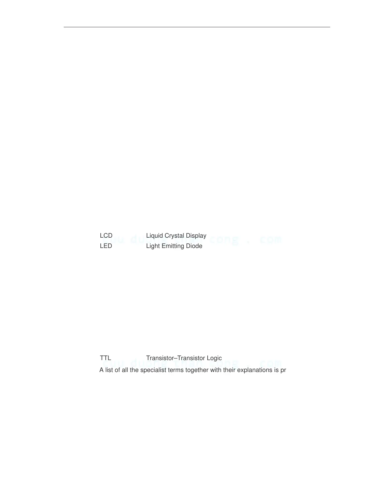 The abbreviations used in this equipment manual have the following meaning: