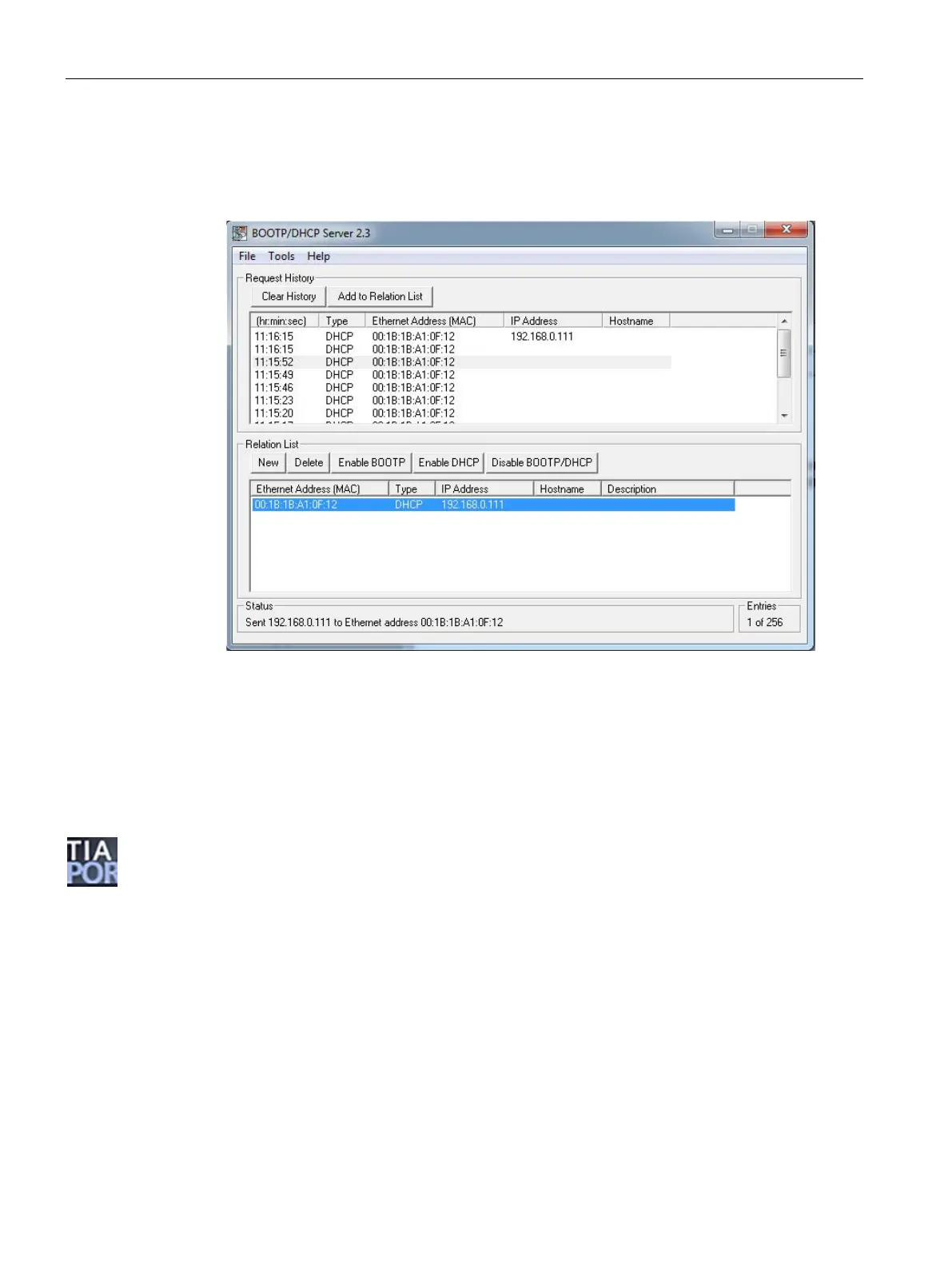 Figure 5-2 BOOTP / DHCP server software