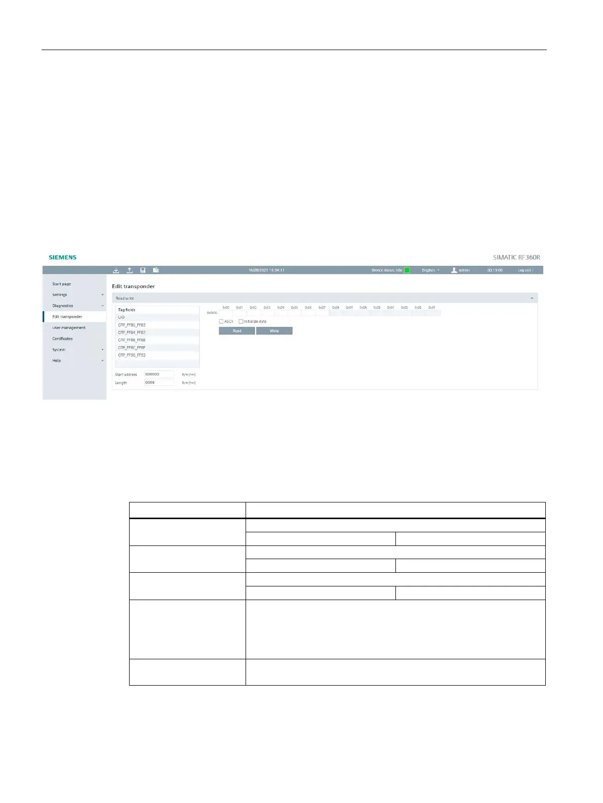Next to the list of tag fields, the data of the selected memory area is displayed in hexadecimal