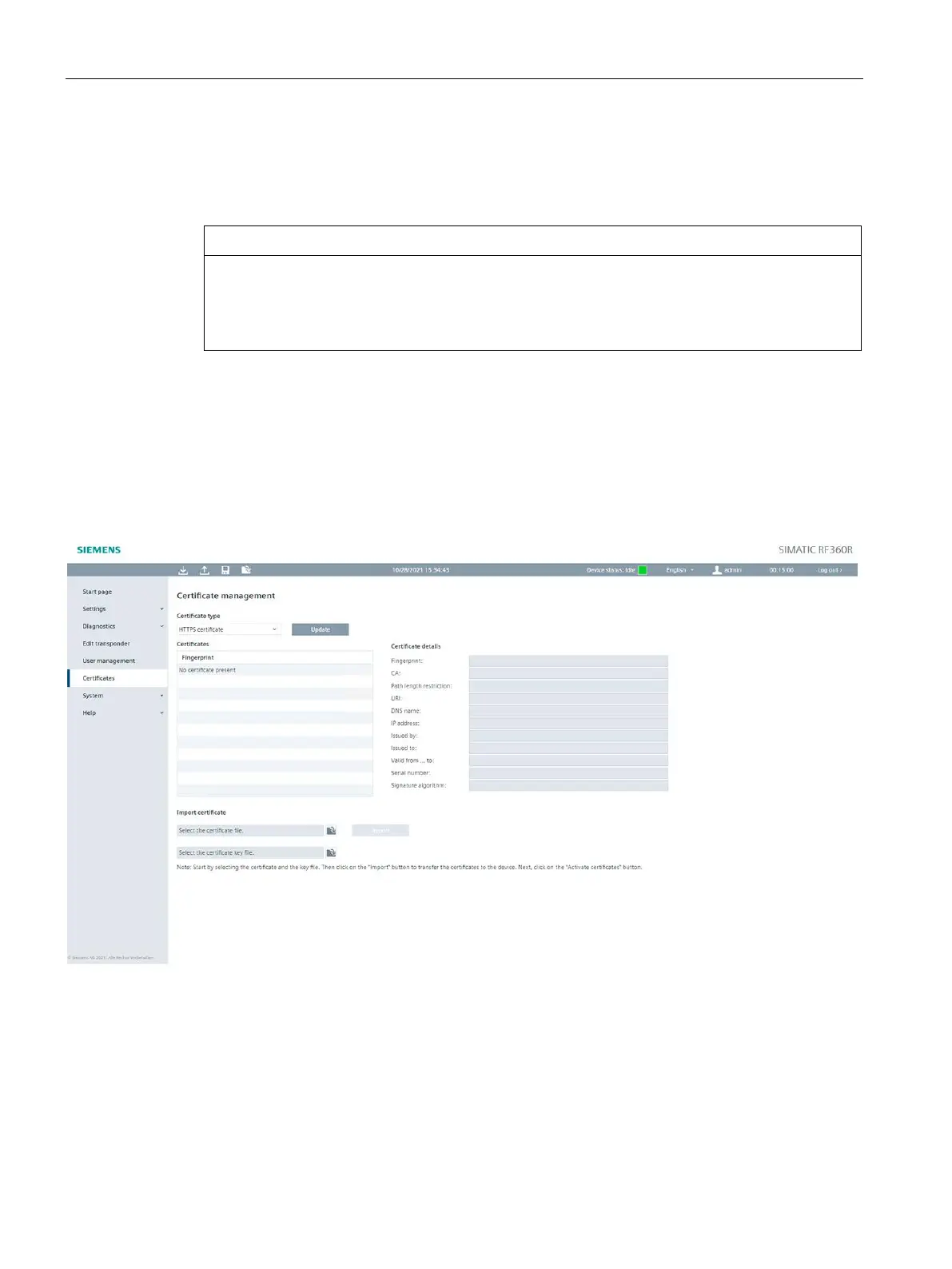 In the "Certificates" menu item, you can view existing certificates, import new certificates, as