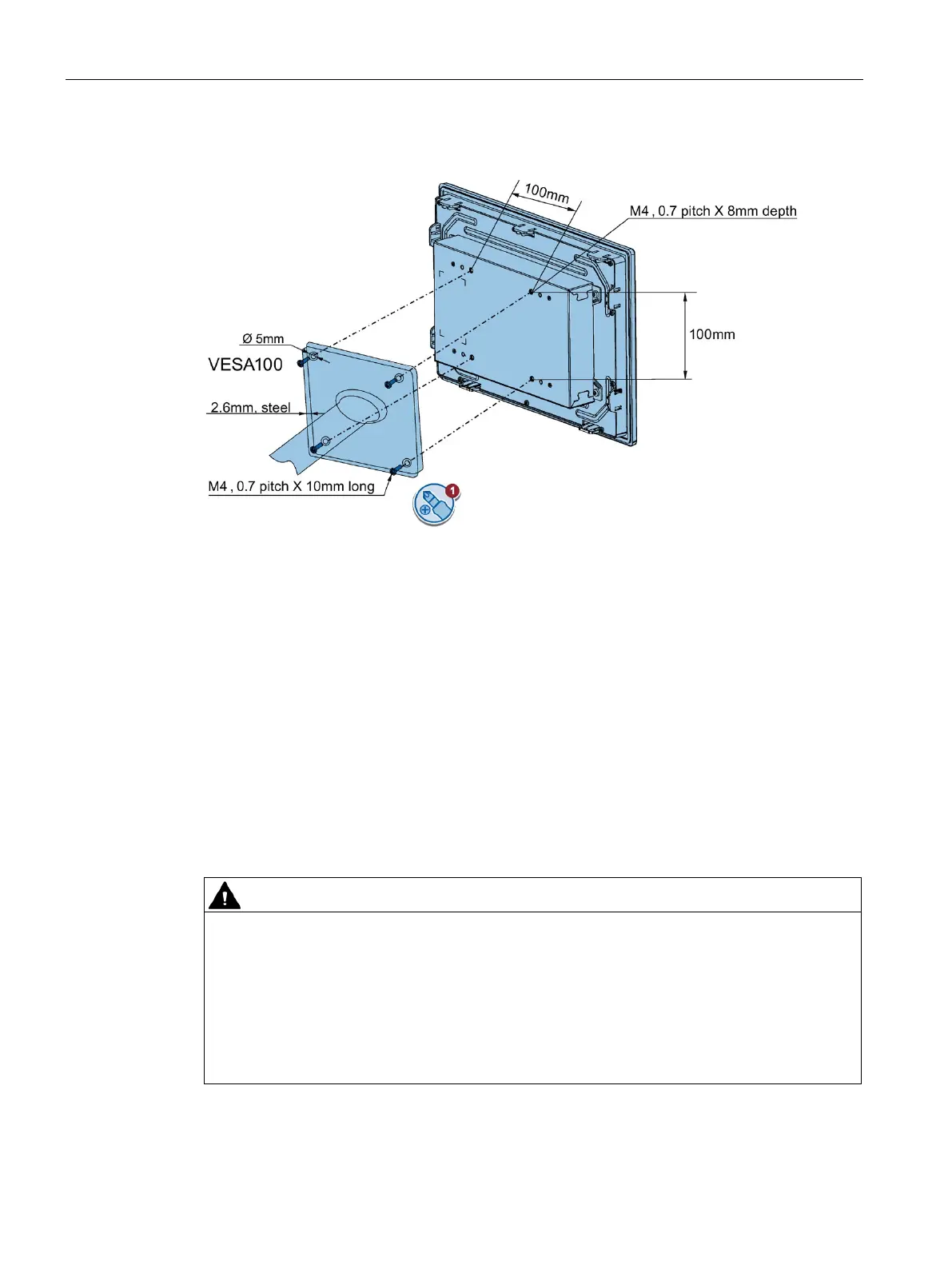 Secure the device to the mounting interface with four M4 x 10 screws.