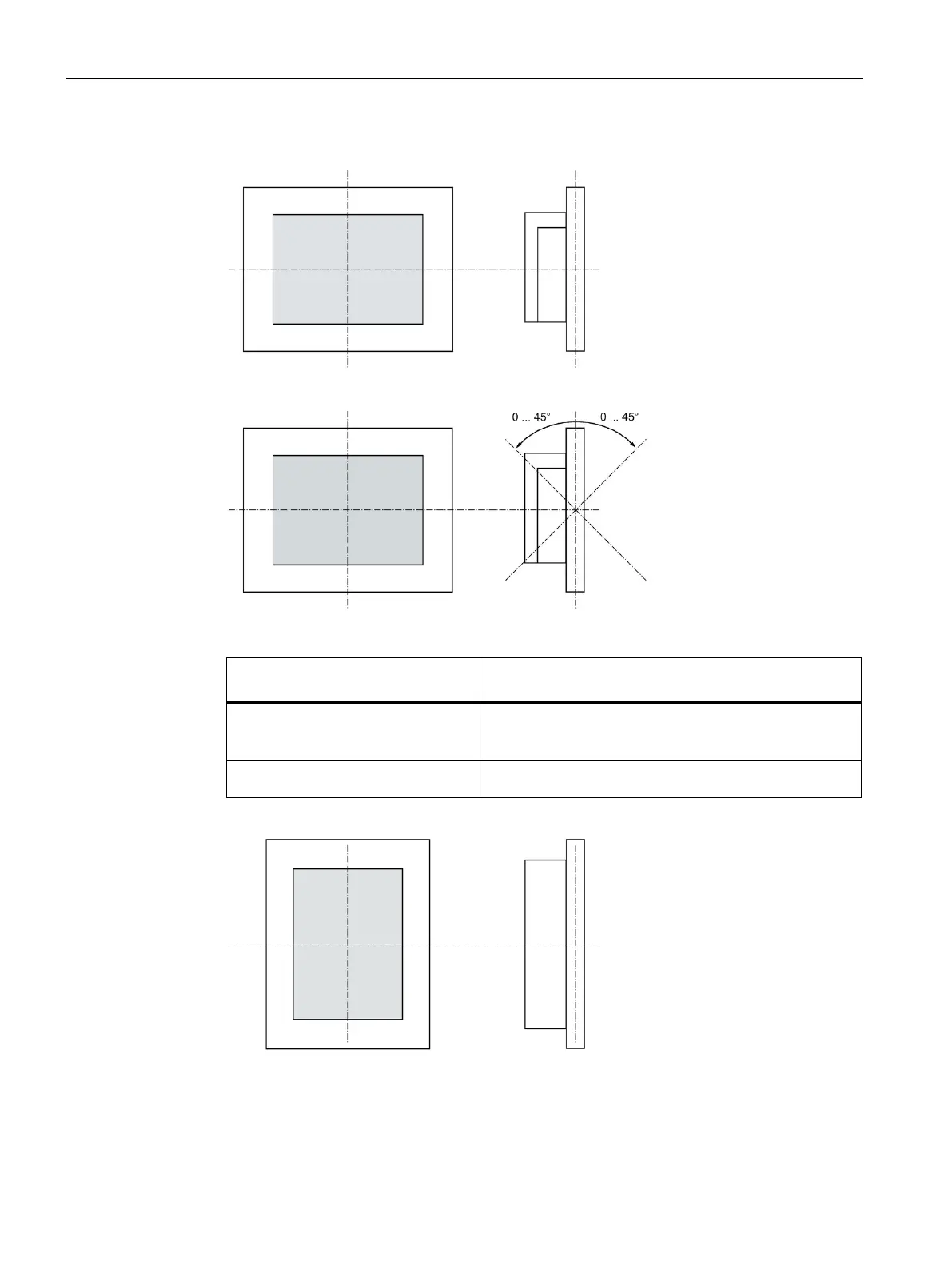 • Vertical installation: display turned through ±90 ° compared with the standard position