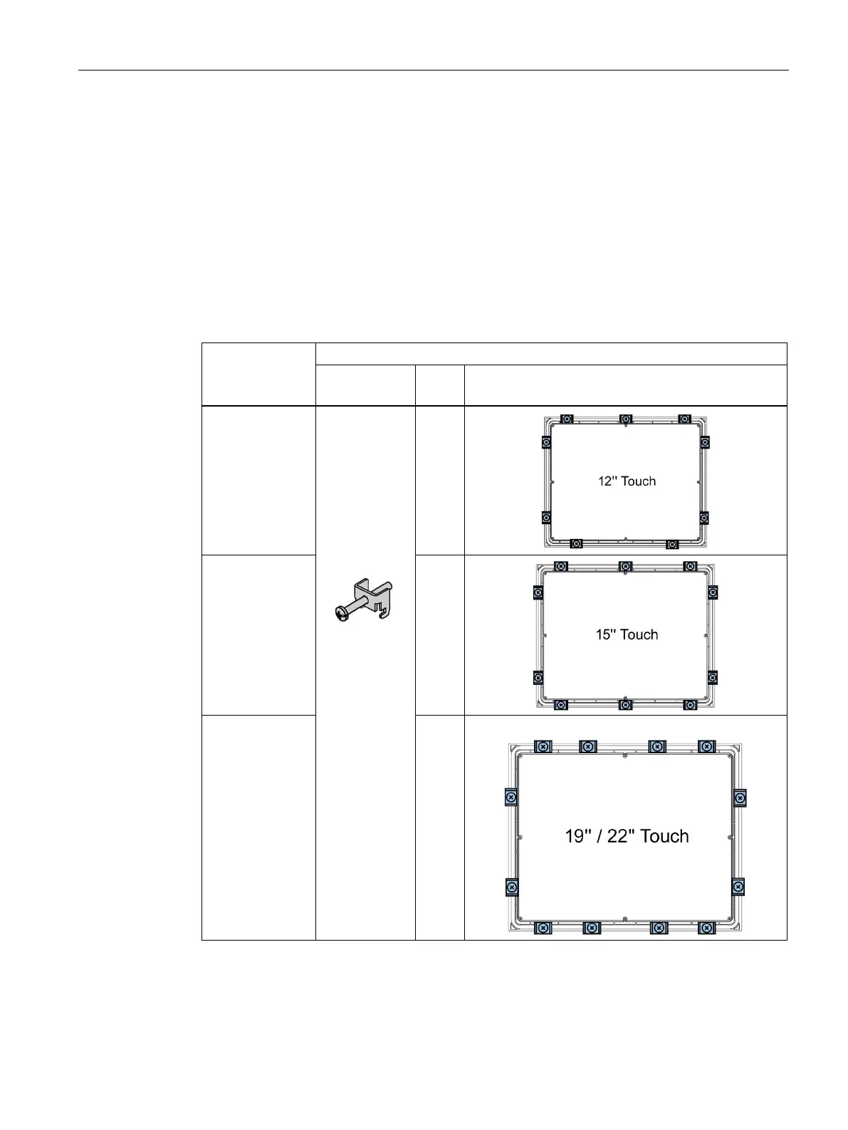 The following table shows the type, number, and position of the mounting clips needed for