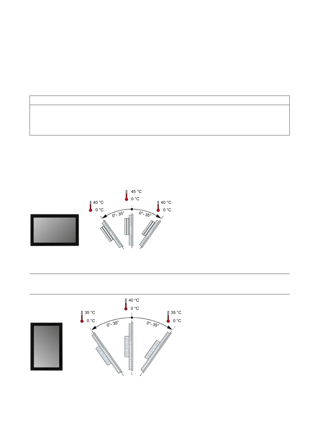 Inclined installation reduces the convection by the device and therefore the maximum permitted ambient temperature for