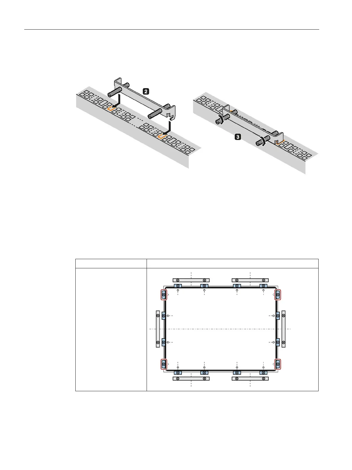 screen, fasten 4 additional mounting clips (available as accessories) at the positions marked