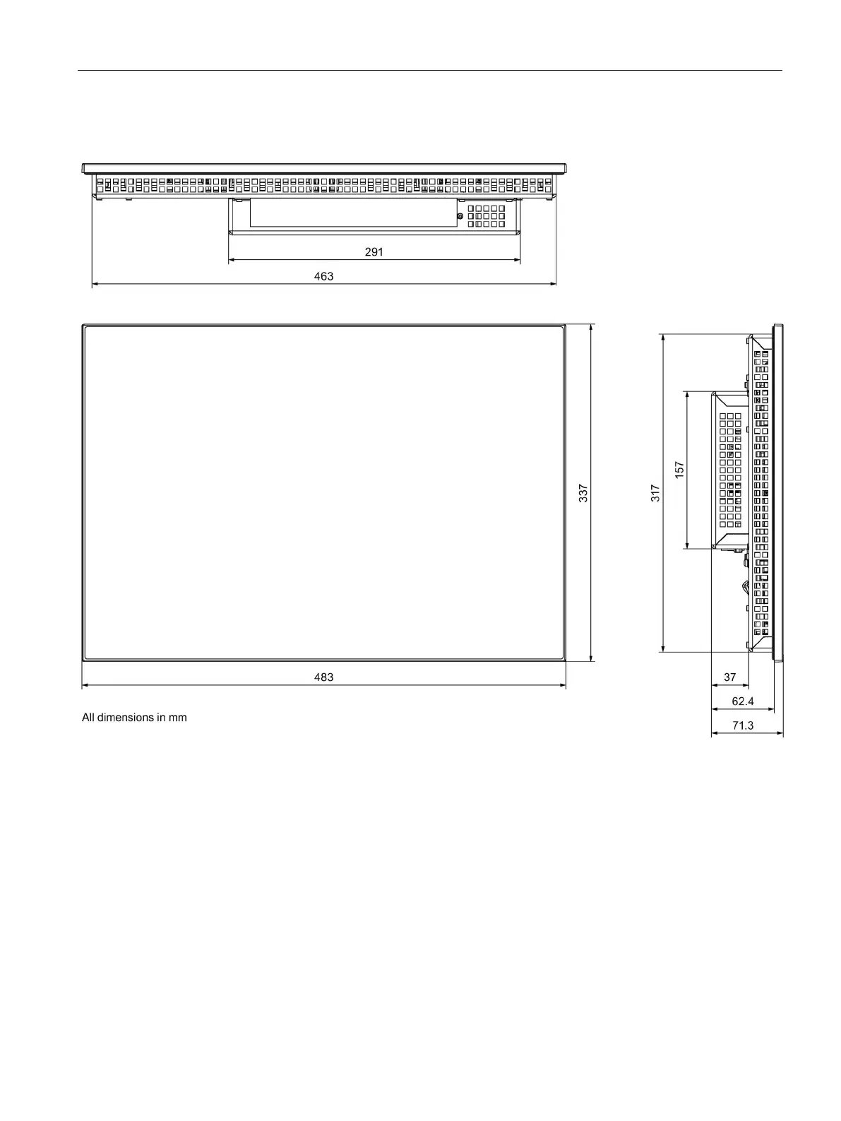 Dimension drawing of the IFP1900 Multitouch and IFP1900 ETH