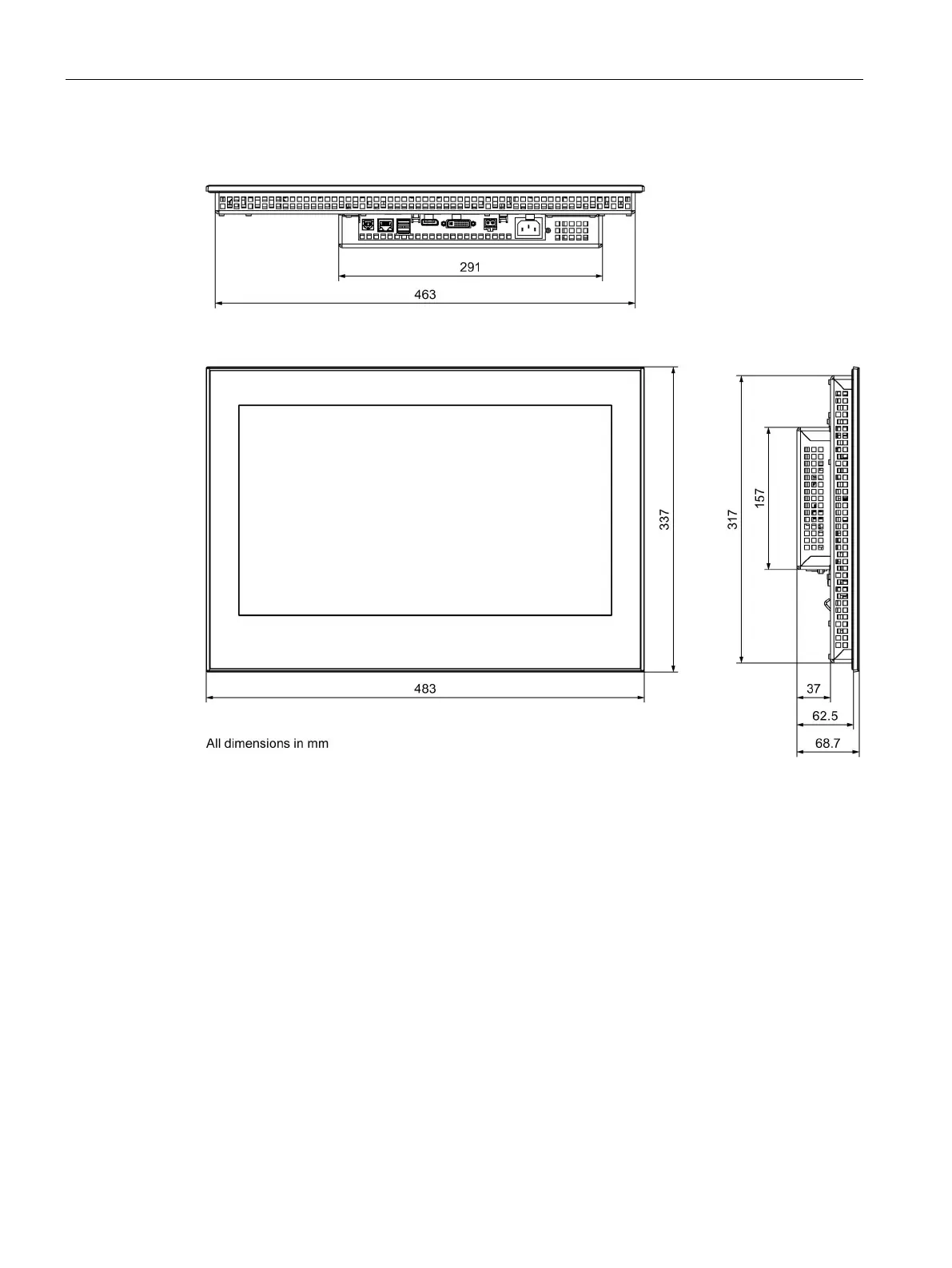 Dimension Drawing of the IFP1900 Multitouch and IFP1900 ETH