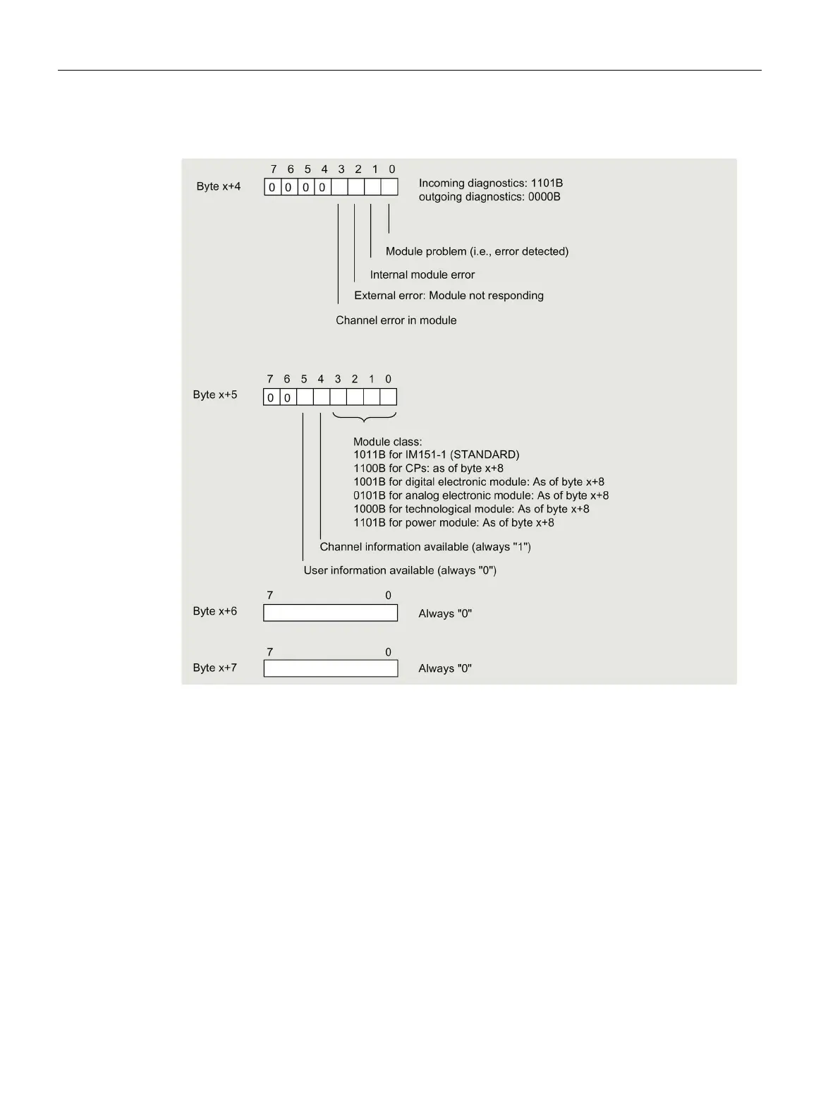 Figure 4-6 Structure of bytes x+4 to x+7 for diagnostic interrupt