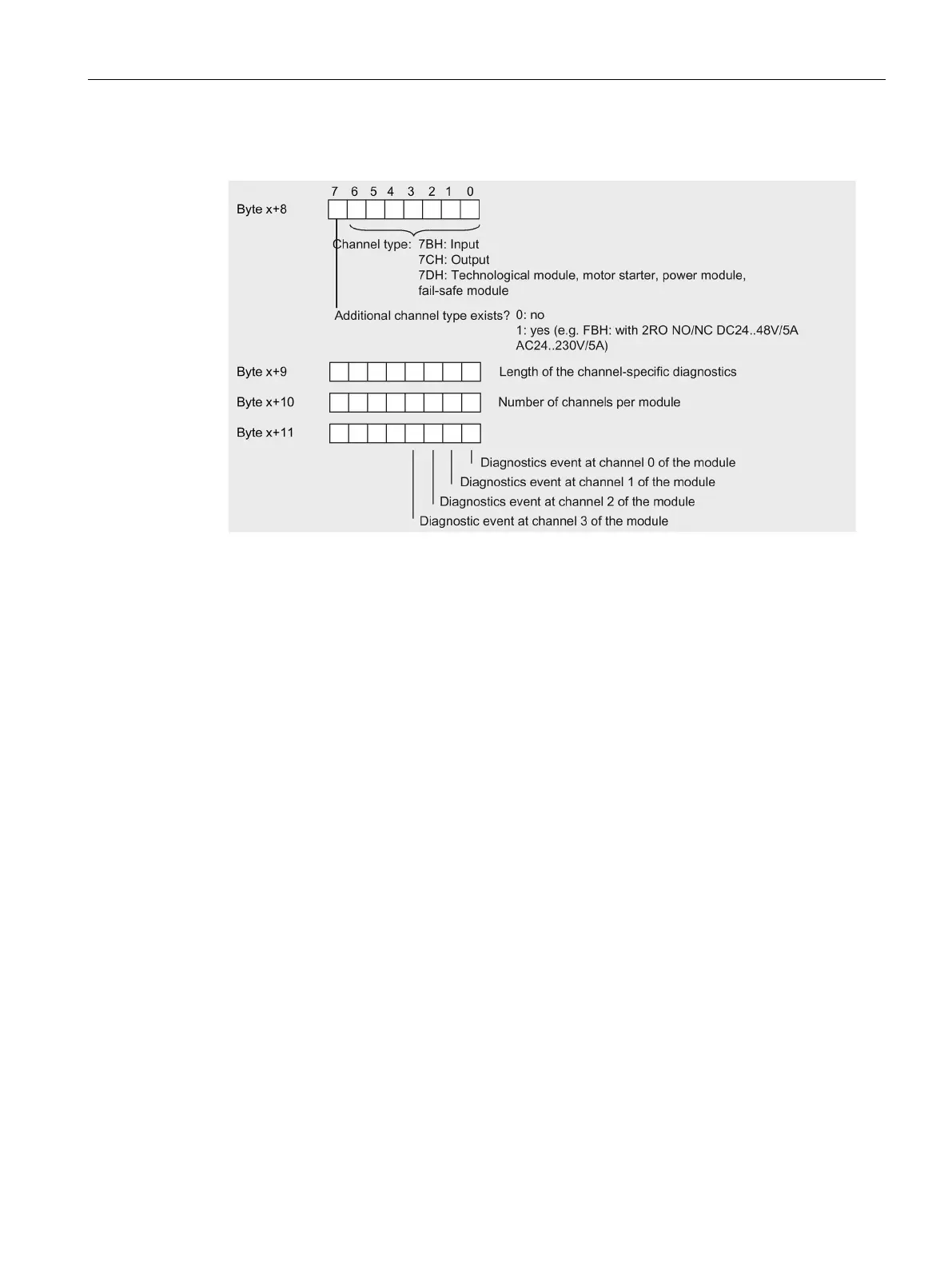 Diagnostic interrupt from the modules, byte x+8 to byte x+11