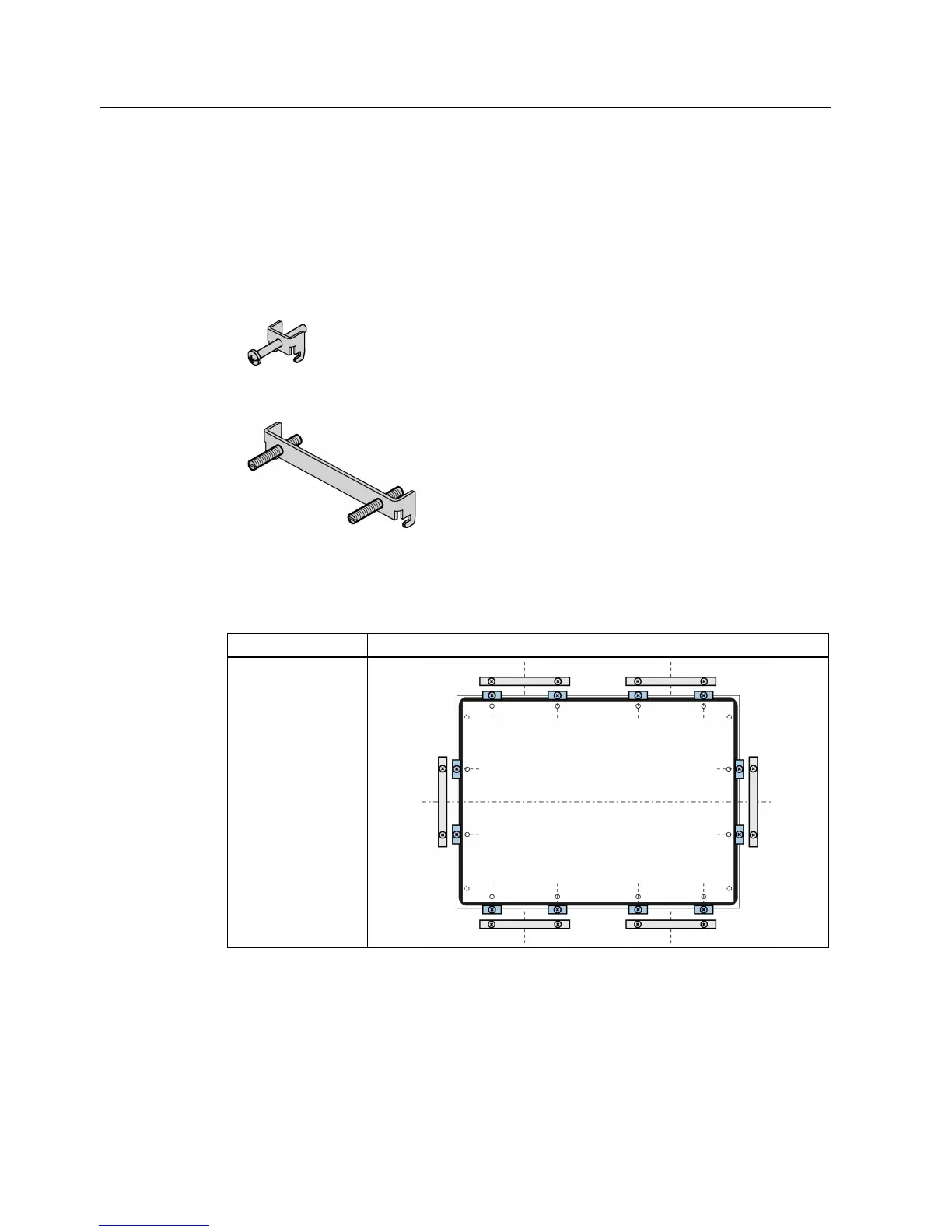 Positions of the mounting clips or mounting brackets